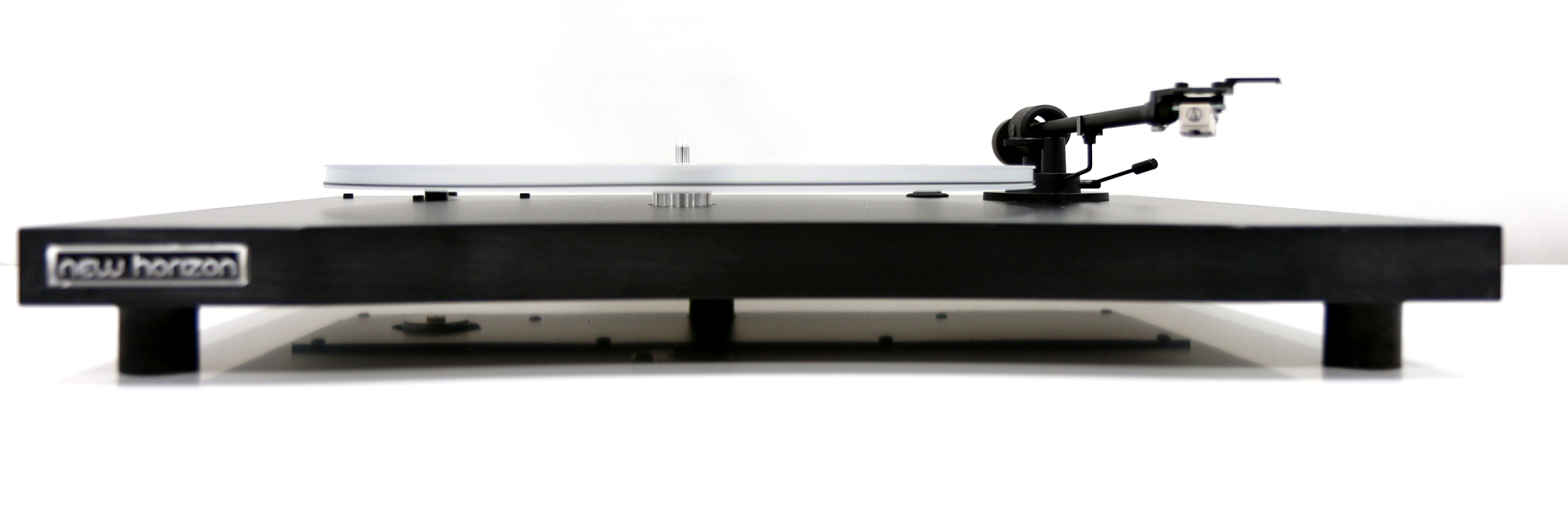 Jedną z mocnych stron gramofonów New Horizon jest oś obrotu talerza. Doskonałość mechanizmu jest wynikiem dokładnie przemyślanego projektu oraz kilku prototypów. Obecnie produkowany element ma solidną, odwróconą konstrukcję nośną z trzech kawałków aluminium i stali, która gwarantuje maksymalną „ciszę” i bardzo niskie tarcie obrotowe.
